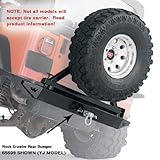 This rear bumper is tough and durable and ideal for carrying oversize tires and will accept a Warn Tire Carrier.It has tapered ends for an increased departure angle and has an integrated 2-in receiver for mounting your portable winch or carrying a shackle bracket.Compatible with 87-96 Jeep Wrangler YJ .